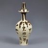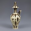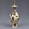 좁고 긴 목 위에 원반형 마디와 물을 넣는 첨대가 있는 정병입니다. 정병은 불교 용구 중 하나로 감로수(甘露水)나 깨끗한 물(淨水)을 담는 병입니다. 팽만한 어깨에서 곡선을 이루며 하단으로 좁아지는 형태입니다. 어깨에는 용머리를 닮은 형상의 주구(注口)가 붙어있습니다. 굽은 편평하며 굽바닥에 供御(공어)라는 관지가 새겨져 있습니다. 관지를 통해 이 유물이 황제를 위하여 만들어졌음을 알 수 있습니다.