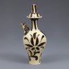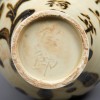 동체 중앙에는 荷月 皇祐 二年 甲一(하월 황우 이년 갑일)이라는 관지가 있습니다. 황우(1049~1054)는 송나라 인종의 일곱 번째 연호로 황우 2년은 1050년입니다. 하월은 여름을 의미하므로 이 유물의 제작 시기는 1050년 6월경으로 추정됩니다. 그 뒤편에는 커다란 꽃이 그려져 있고 목과 첨대, 동체 전반에는 점과 선이 수직을 이뤄 반복적으로 시문되었습니다. 주구의 용머리와 입도 철화로 채색되었습니다. 이 유물은 정요에서 제작되었으며 정요는 송대 5대 명요 (여요, 관요, 가요, 균요, 정요) 중 한 곳으로 황실용 자기를 제작하던 곳입니다.