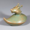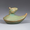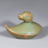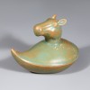 This is a set of twelve zodiac-shaped water droppers produced at the Ru kilns during the Northern Song dynasty. Each piece has a droplet-shaped body, topped with the head of one of the twelve zodiac animals. In China, figures of the twelve zodiac animals began to be made as burial objects for apotropaic (evil-averting) purposes from the Southern and Northern Dynasties period, and by the Song dynasty they were also produced in porcelain. These water droppers, with their neat, compact forms, depict the auspicious zodiac animals in a realistic manner that clearly conveys the characteristics of each creature.