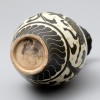 The mouth is trumpet-shaped and flares outward, with a lip modified to resemble flower petals. Below the slender neck, the body forms a round and elongated shape. The black-flower technique was used, in which the clay body was coated with white glaze and then painted with designs using black pigment. During the firing process, kiln transmutation occurred due to the kiln atmosphere, resulting in natural irregularities on the surface.