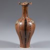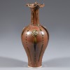 此花口瓶施酱釉。器形呈梅瓶式,口沿作花瓣形,长颈,丰肩。