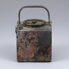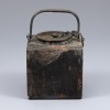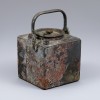 This bronze square kettle is presumed to have been crafted during the late Joseon period. It features a nearly cubic body topped with a flat lid, which is secured to the body by a chain to prevent loss. A spout is located at one corner of the body. Constructed from bronze to ensure durability, the surface bears traces of corrosion resulting from the passage of time.